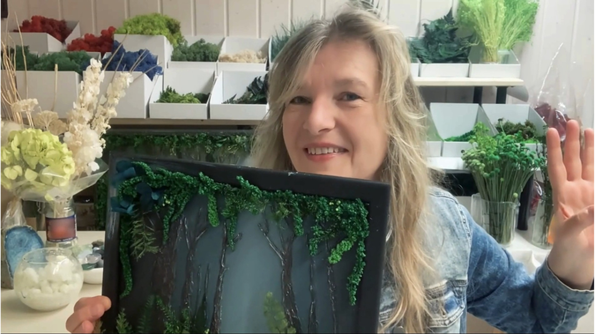 - Cours individuel – matériel complet à disposition et fourni (peintures, végétaux stabilisés, support bois, accroche pour le tableau, colle et autres fournitures)