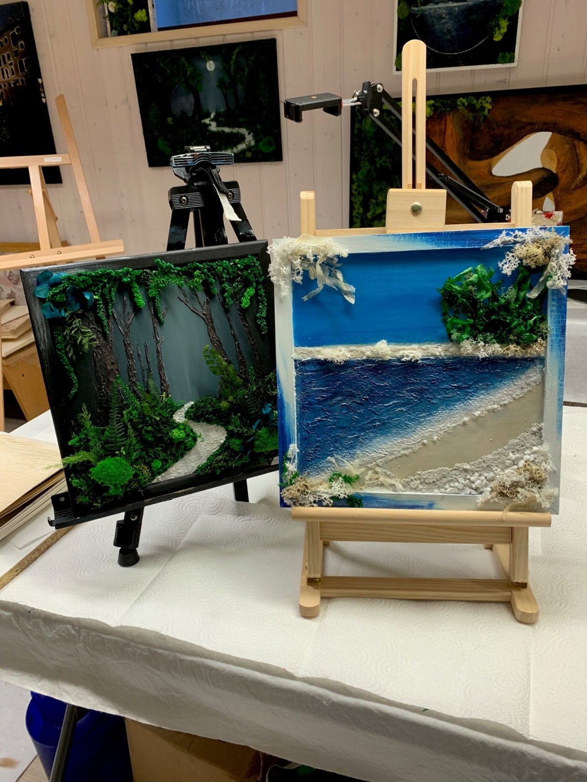Cet atelier personnalisé, en privé ou semi-privé à deux, vous invite à créer votre propre tableau inspiré de la nature — modèles à choix de forêt ou votre photo personnelle — en associant peinture acrylique, modeling paste et végétaux stabilisés. Tableau format 30x30 cm.