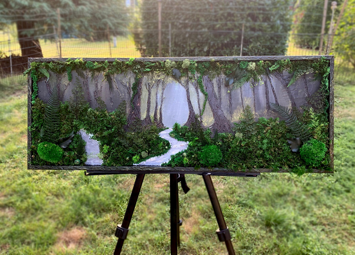 Dans cette vidéo, je vous emmène dans la 4ème dimension où la forêt prend vie grâce au relief dans un tableau que j'ai créé avec de la peinture et de vrais plantes et végétaux stabilisés. Puis j'ai semé des petits cailloux pour ne pas me perdre face au méchant LOUP (enfin, surtout face à mon chien !)